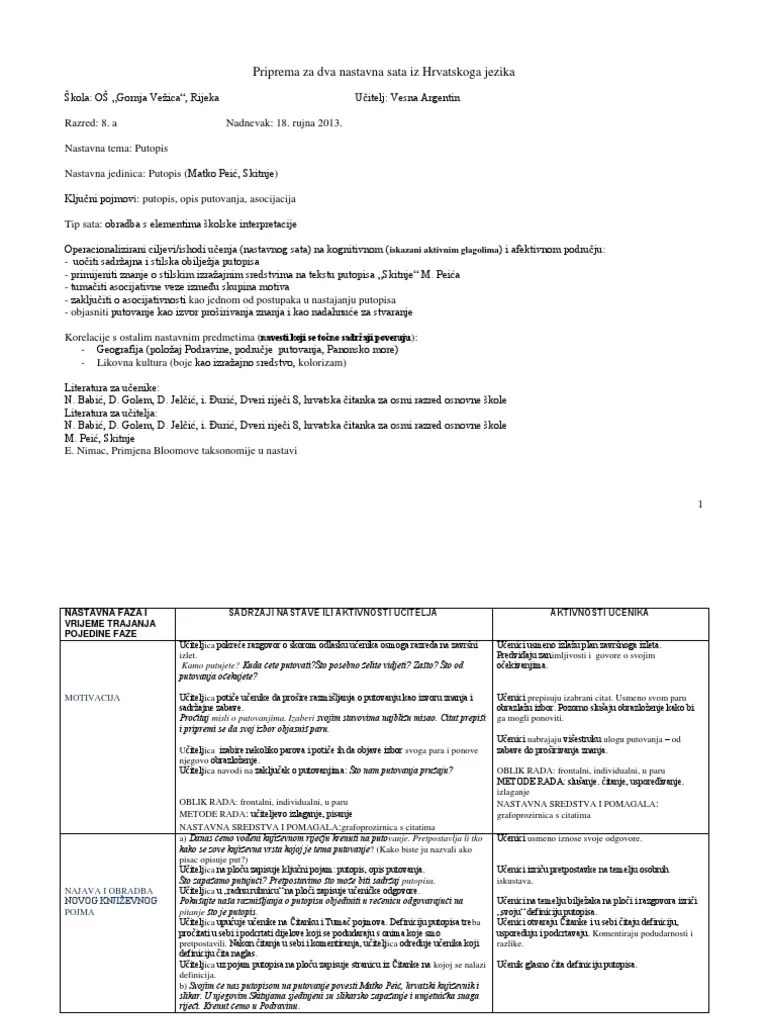 Individualno možete izabrati jednu od ponuđenih tema (putopis u jednom mediju), u paru (putopis u dvama medijima), a kao timovi možete obraditi sve ponuđene teme... Ako je broj timova veći od broja ponuđenih tema, mogu po dva tima izabrati isti zadatak. Sastavi se mogu iskoristiti i na teme ekskurzija ili jedno … Individualno možete izabrati jednu od ponuđenih tema (putopis u jednom mediju), u paru (putopis u dvama medijima), a kao timovi možete obraditi sve ponuđene teme. Jako mi se svidio tvoj putopis.sviđa mi se način na koji si opisao svoje putovanje,okolinu oko sebe i pridonio važnost velikim i spektakularnim građevinama. Najviše mi se svidjela "dubai. Krajem mjeseca srpnja krenuli smo do trogira; U 9:22 svaka čast, roberte! Mislili smo da je tako najbolje za naše zdravlje. Ali putem do odredišta imali smo još nekoliko stanica. Putovanje u putopis svedoči o svakodnevici, o upoznavanju jedne zemlje, o lako vidljivim izrazima života te zemlje, ali i o skrivenim, senovitim stvarima koje se otkrivaju tek oku iskusnog …. Putovanje u putopis je knjiga o norveškoj i knjiga o isidori sekulić.